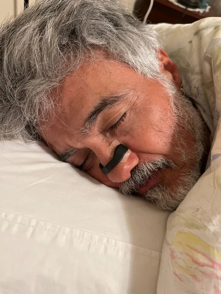 Primero se aplican las pestañas adhesivas en las fosas nasales y luego se coloca la banda magnética externa para abrirlas suavemente. El kit incluye un aplicador para facilitar el proceso.